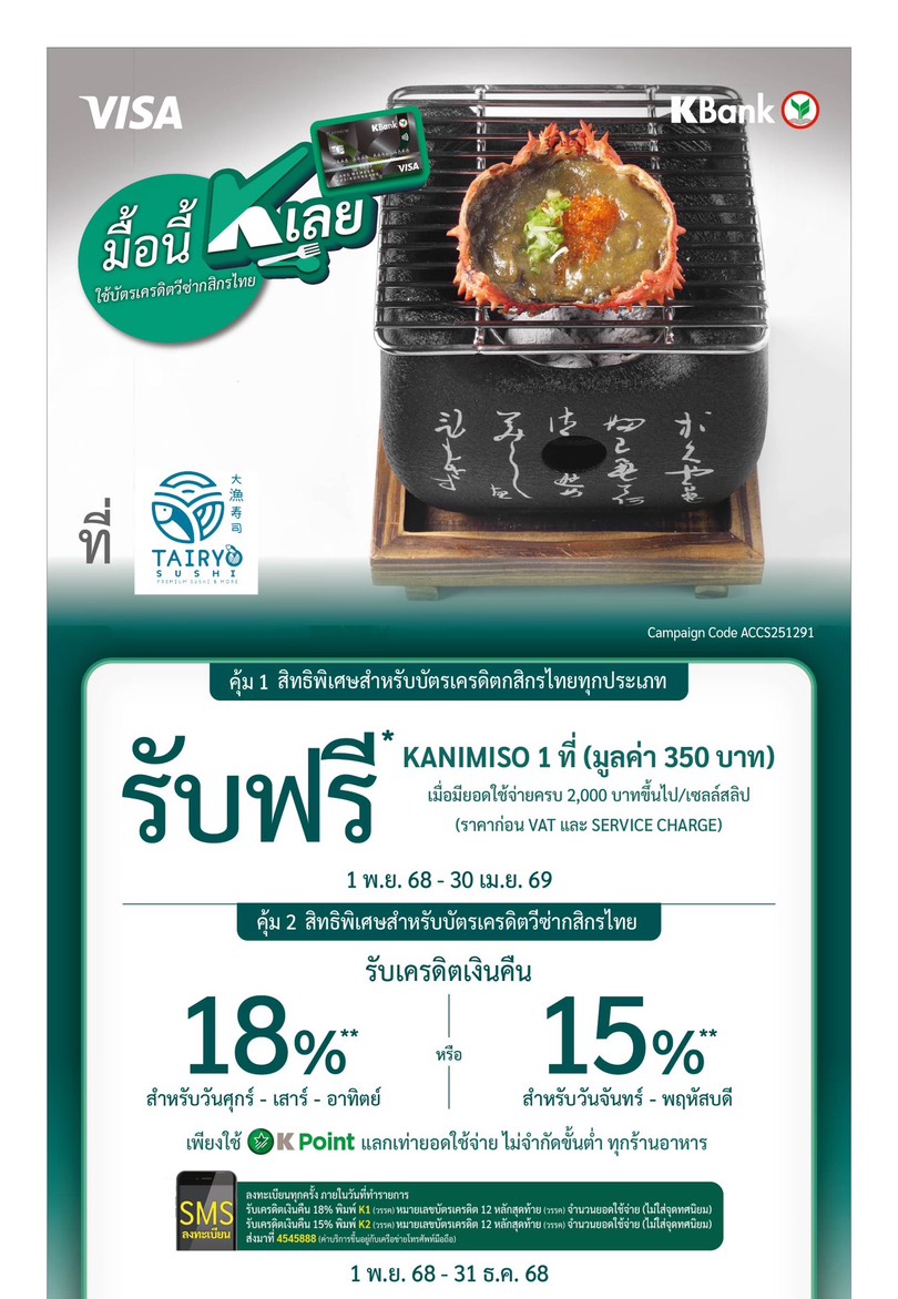 ทานครบ 10,000 บาท ได้บัตร Platinum ชำระเงินสดลด 15% บัตรเครดิตลด 10%