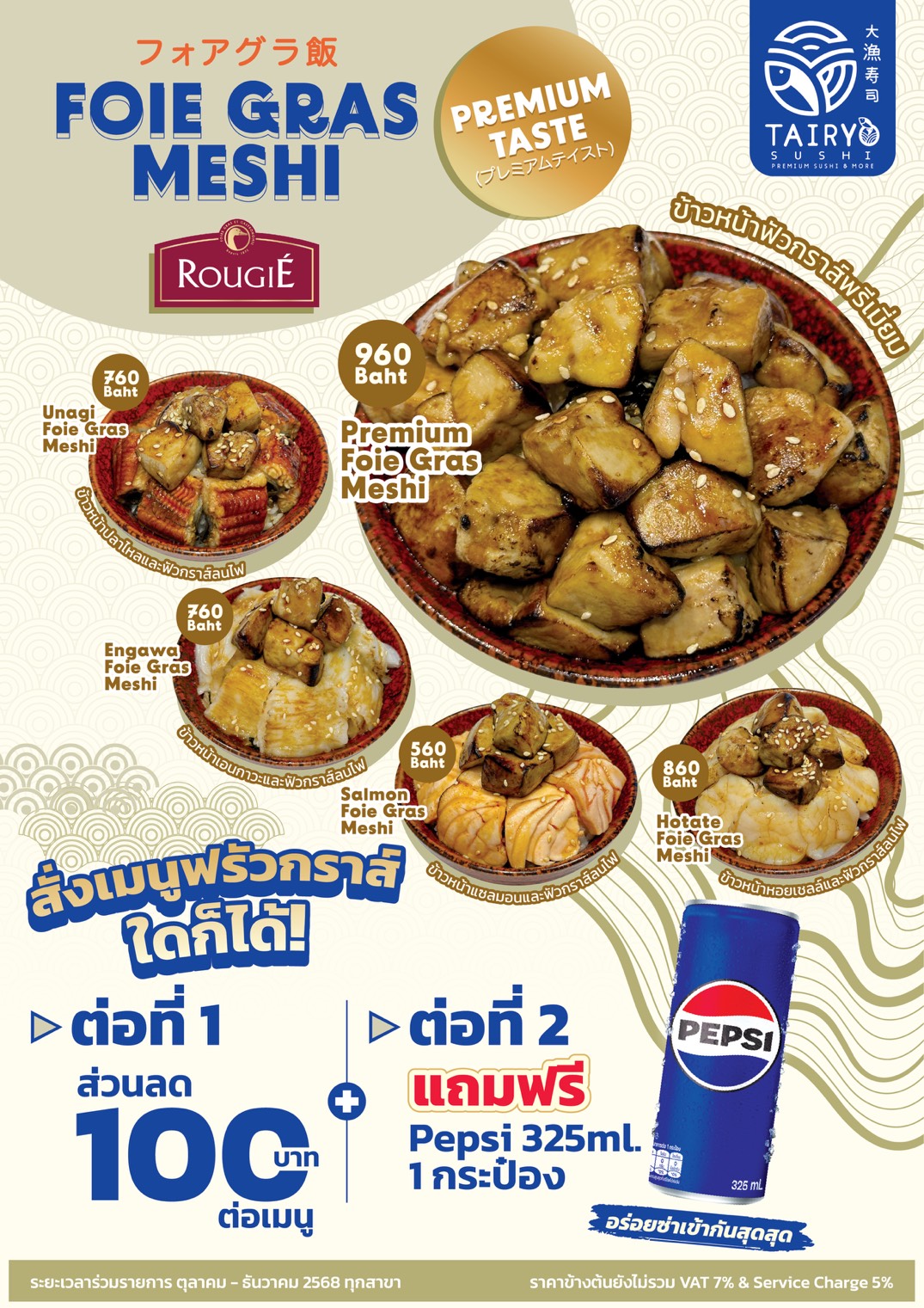 ไทเรียวซูชิ เราตั้งใจพาทุกท่านเดินทางไปกับเรือไทเรียว เรียนรู้วิถีชาวประมงญี่ปุ่น เพื่อค้นพบที่มา ค้นพบความหมาย และคุณค่าของวัตถุดิบอาหารญี่ปุ่นแต่ละชนิด พร้อมทั้งสนุกกับการทาน วัตถุดิบที่เราตั้งใจคัดสรรมาให้สัมผัส กันอย่างหลากหลาย สด ใหม่ ในราคาที่คุ้มค่าที่สุด